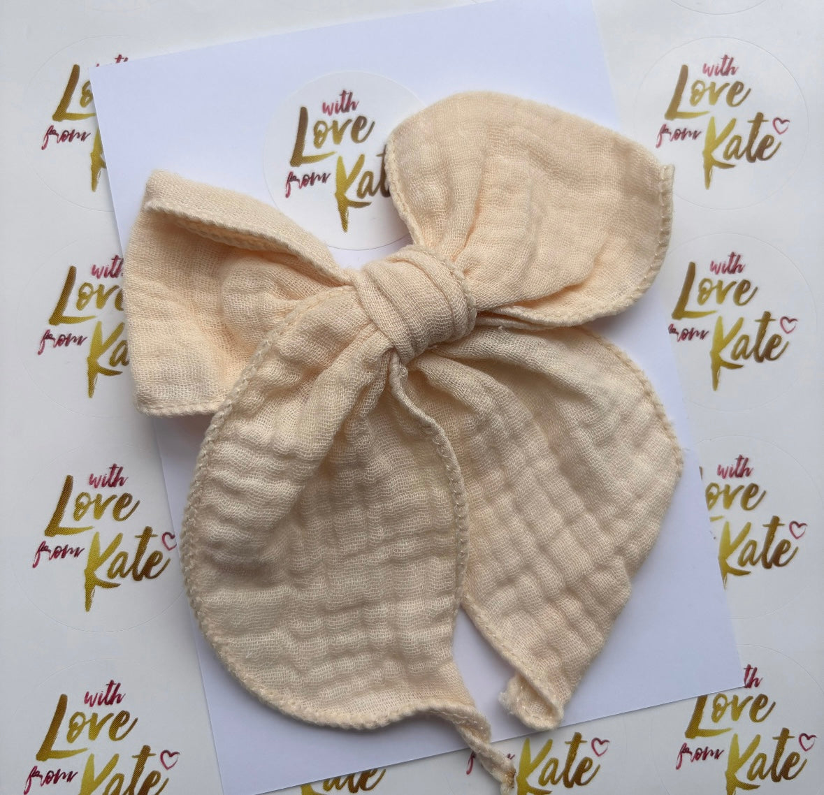 Cream double cloth material longtail bow